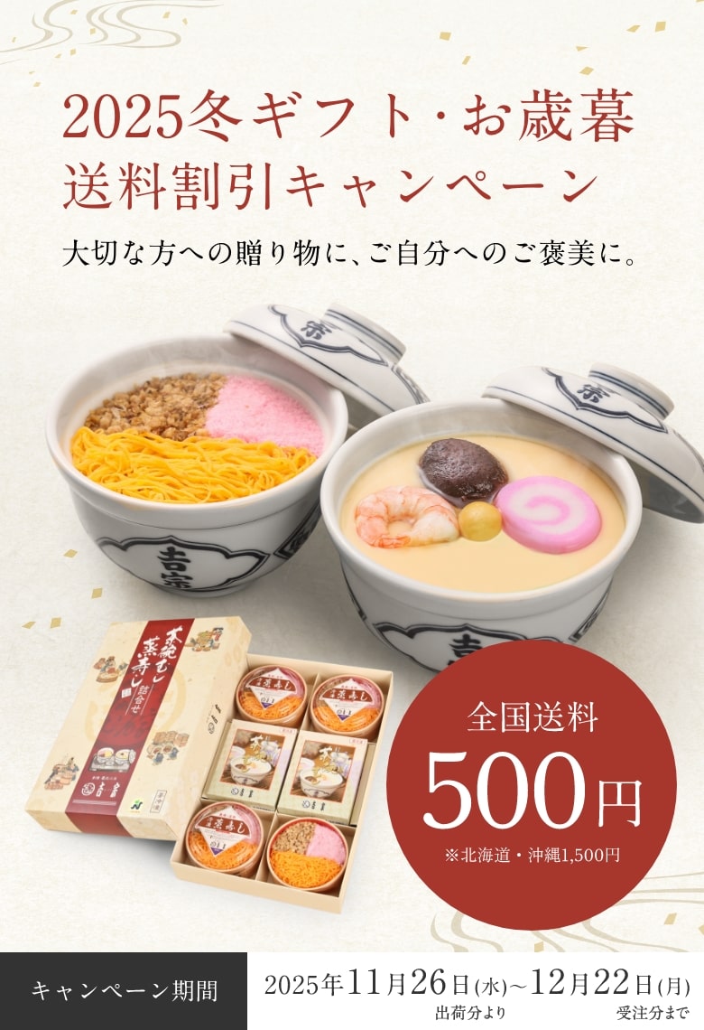 ご贈答・ご自宅用に吉宗の茶碗むし・蒸寿しセットをどうぞ。